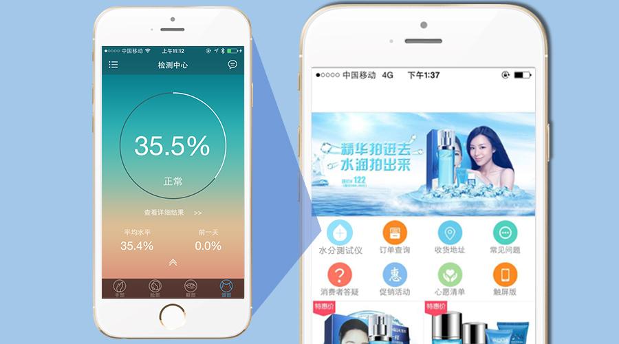 软件方面,将MiLi Pure智能肌肤水分检测仪App植入企业自有App内,使用户在使用MiLi Pure前必须下载企业自有App,每次使用MiLi Pure时都需打开企业自有App;从而有效地促进企业App下载量和打开率。