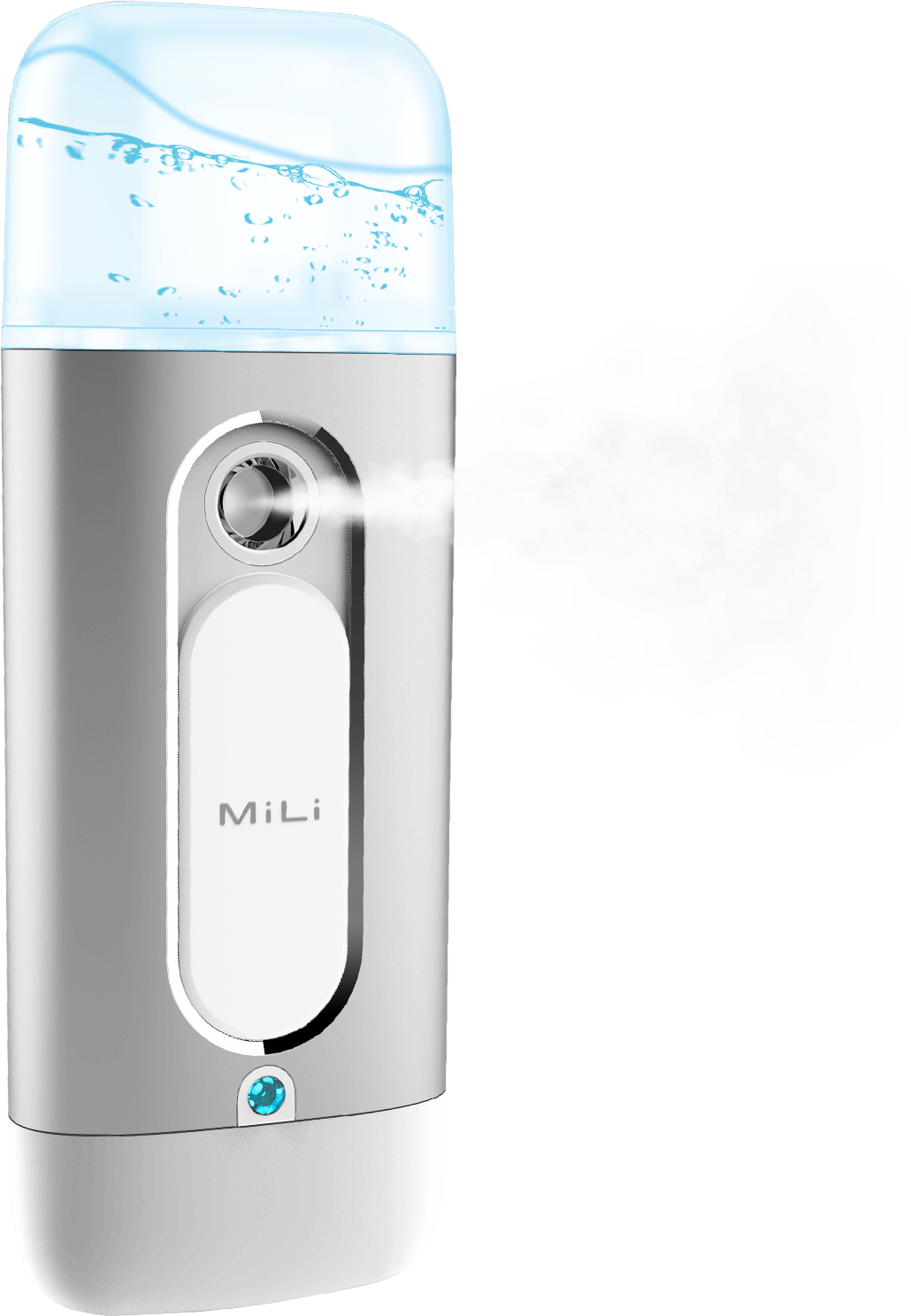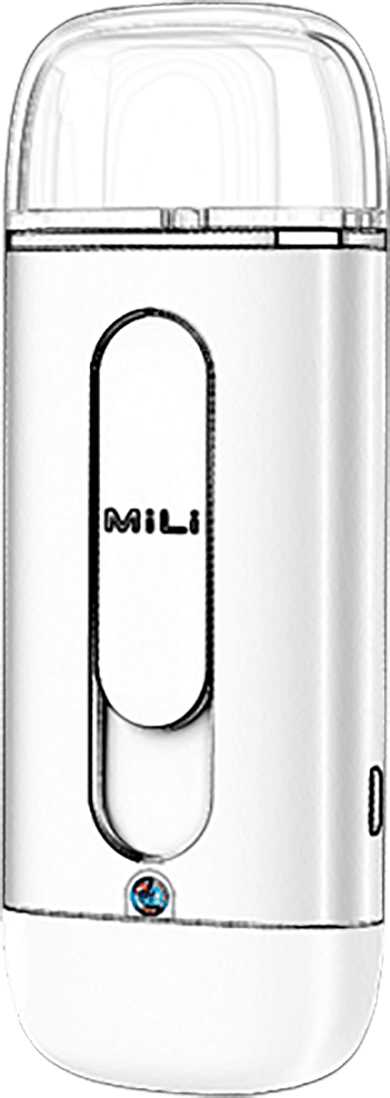 根据肌肤水分检测结果,MiLi Pure Spray智能补水系统通过先进的人工智能算法,自动计算出用户肌肤所需补水量,点击App按钮,喷雾口自动喷雾。