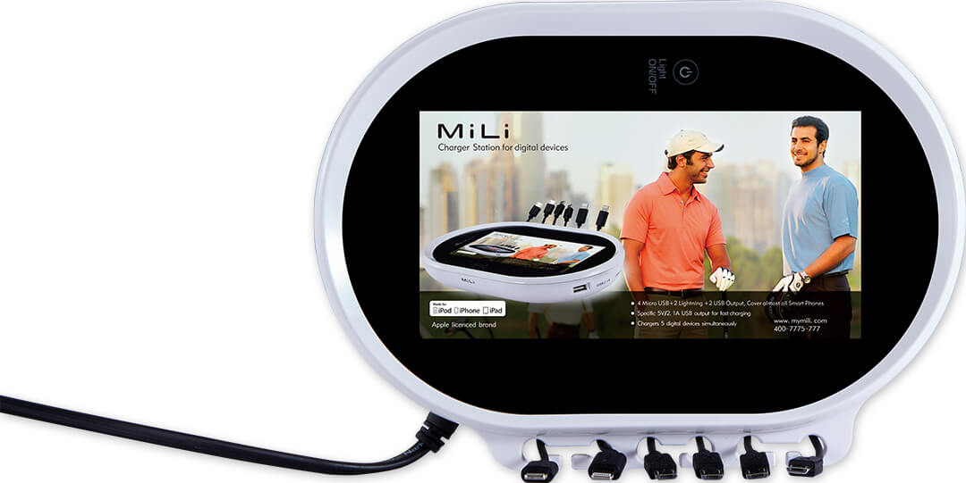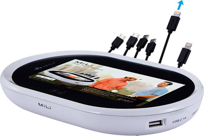 (4个Micro USB接头,2个Lightning接头,1个USB2.1A输出端口,1个USB1A输出端口)