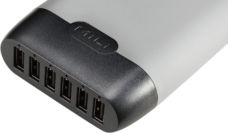 可同时为6台移动设备充电, 贴心的USB排口设计, 数据线不再缠绕