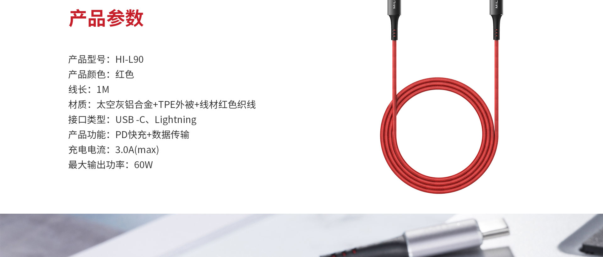 MiLi Braided Type-C to Lightning Cable 快充数据线