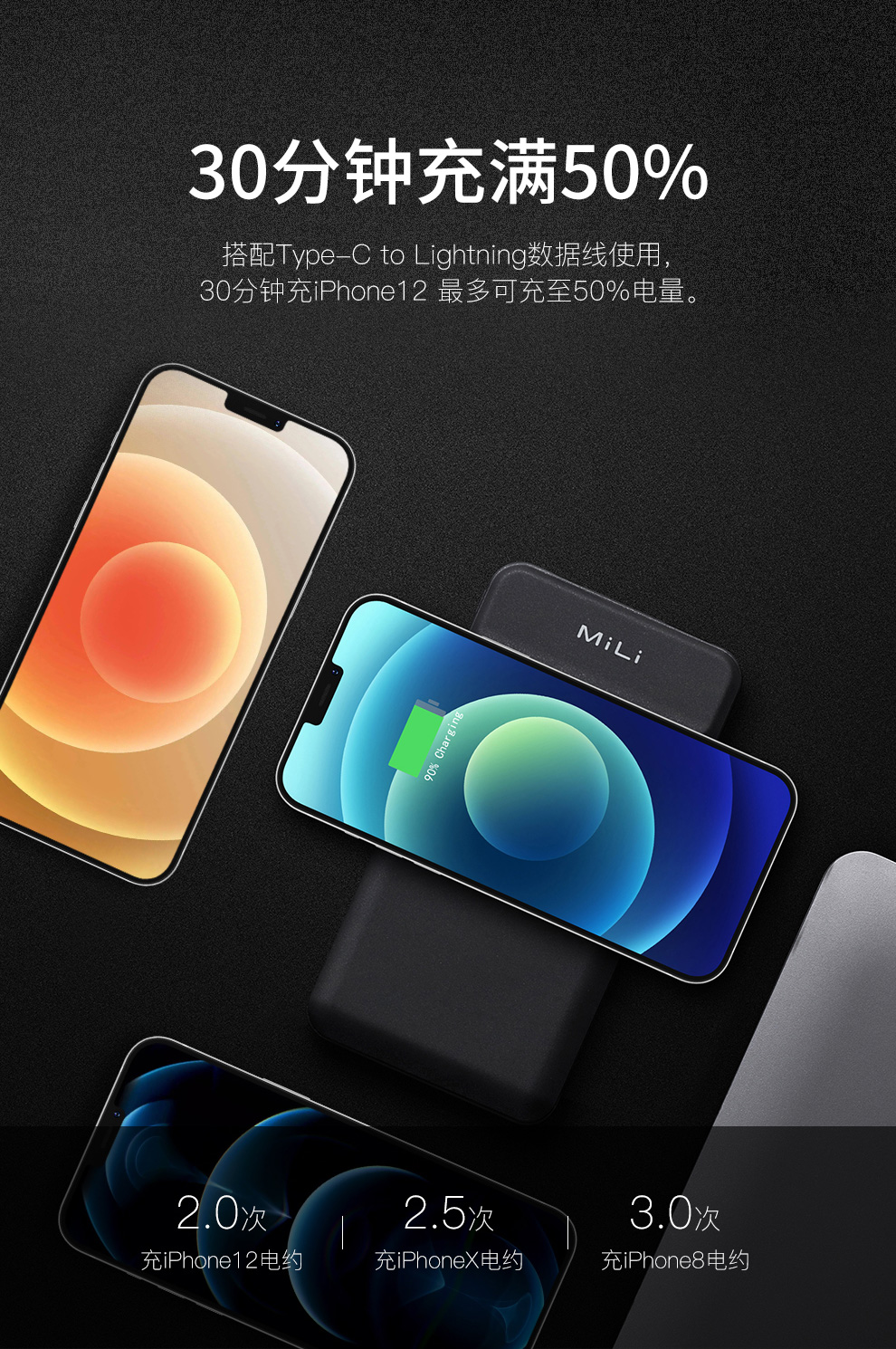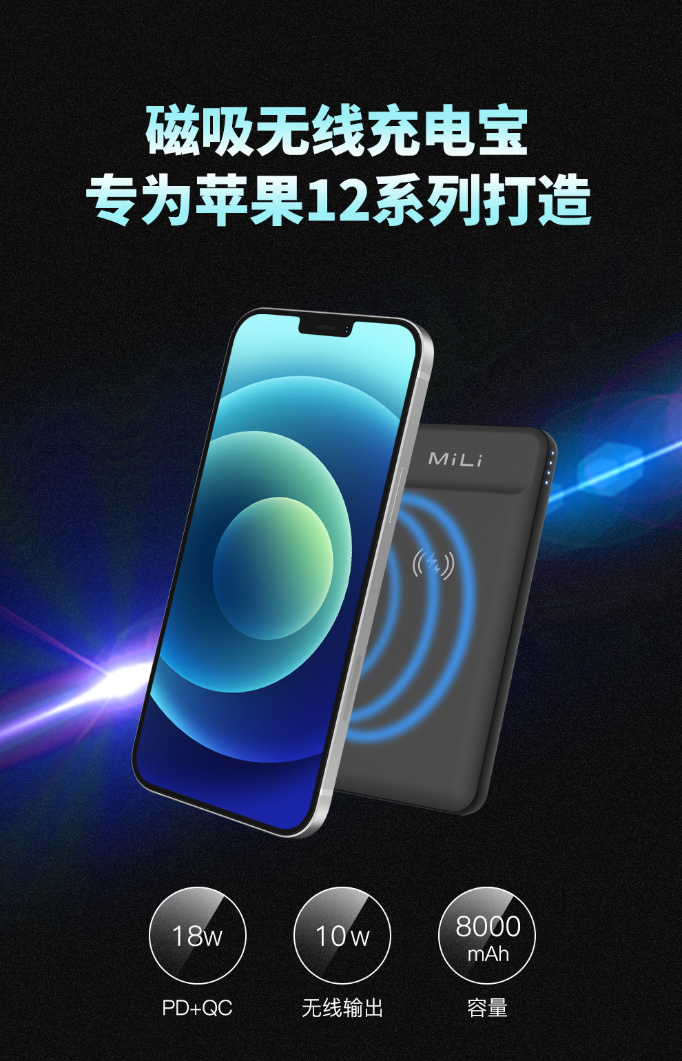 磁吸无线充电宝,专为苹果12系列打造